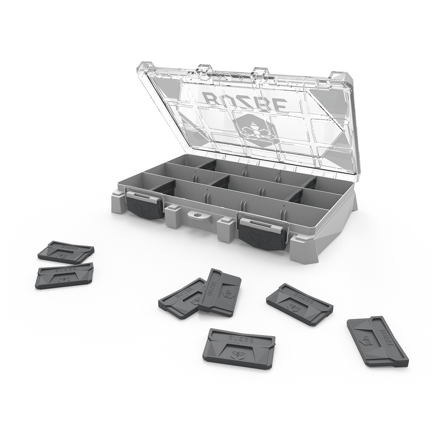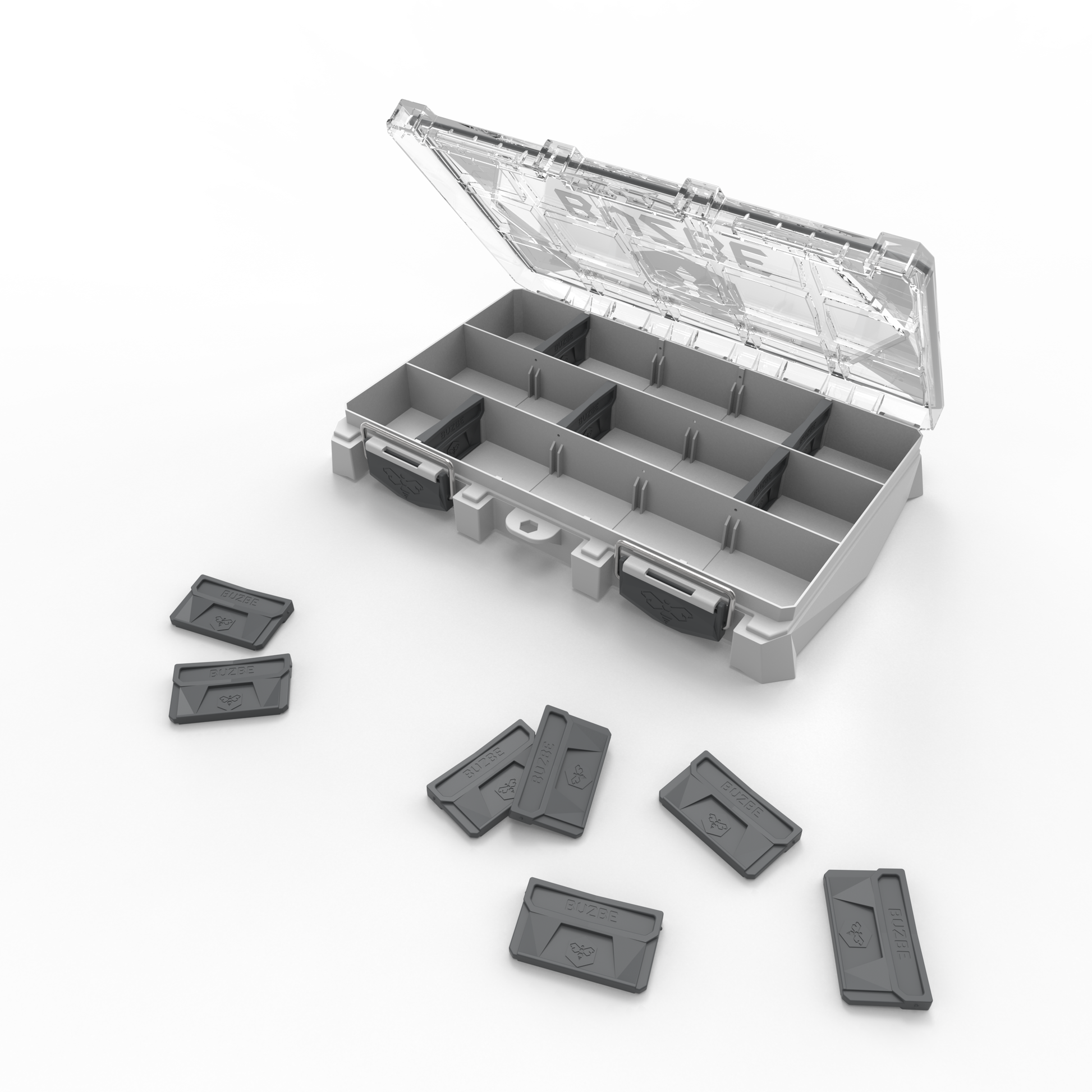 Lock-In Dividers– Dividers snap into place, not allowing the dividers to slide up with small parts transferring underneath.