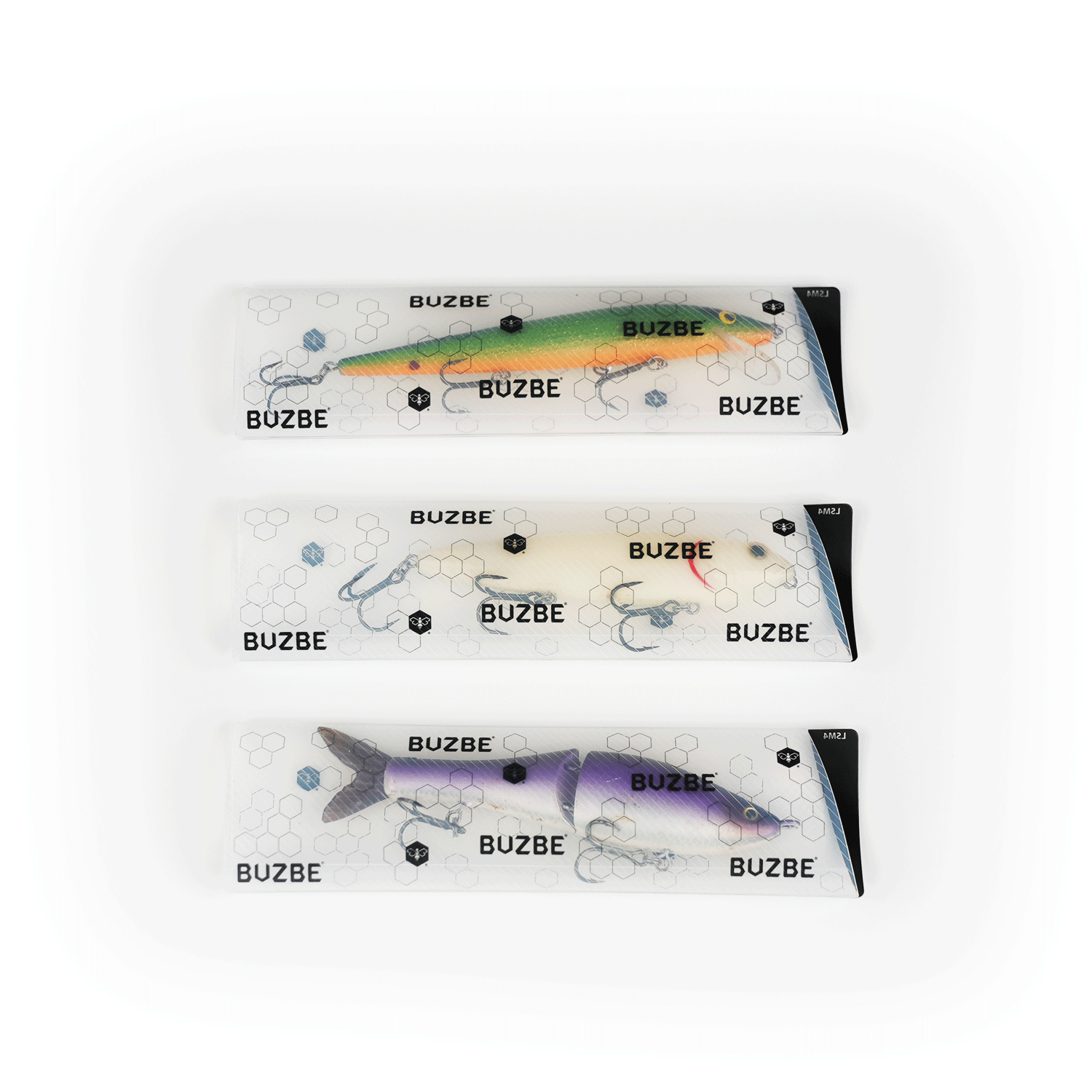 BUZBE Lure Sleeves are designed to protect your lures, keep hooks sharp, and eliminate tangled chaos. From jigs and cranks to jerkbaits, swimbaits, and topwaters, these clear, durable sleeves let you see your bait, grab it fast, and keep your tackle organized.