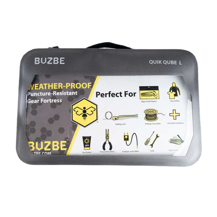 BUZBE has redesigned the standard hard tackle box, creating a soft bag alternative. The BUZBE Quik Qube™ is an over engineered, weather-proof, puncture-resistant, gear fortress. With a transparent window, you are able to quickly identify the contents for ultimate organization and saving time.