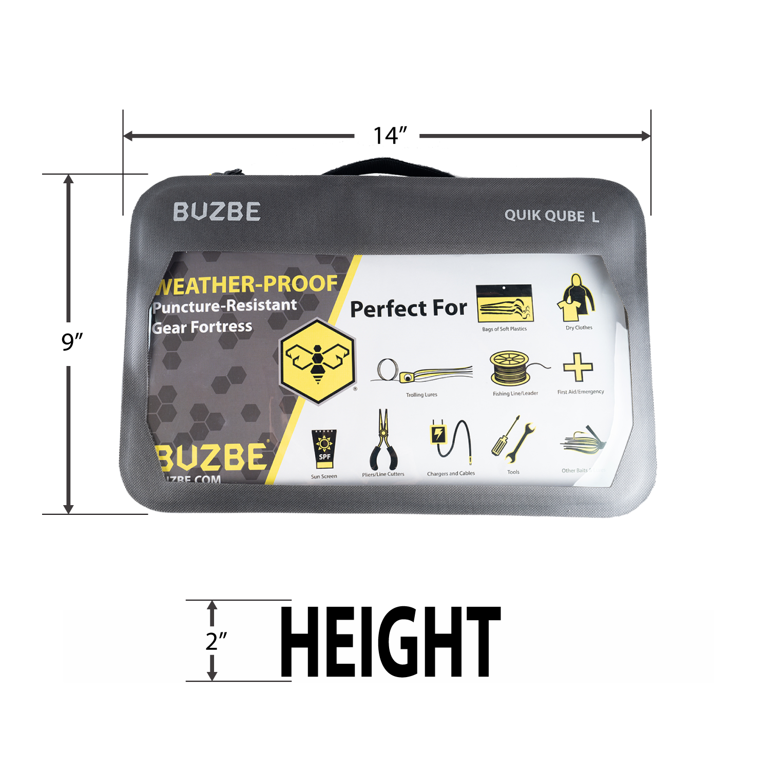 BUZBE has redesigned the standard hard tackle box, creating a soft bag alternative. The BUZBE Quik Qube™ is an over engineered, weather-proof, puncture-resistant, gear fortress. With a transparent window, you are able to quickly identify the contents for ultimate organization and saving time.