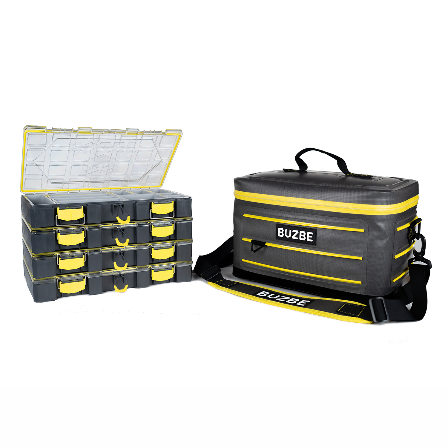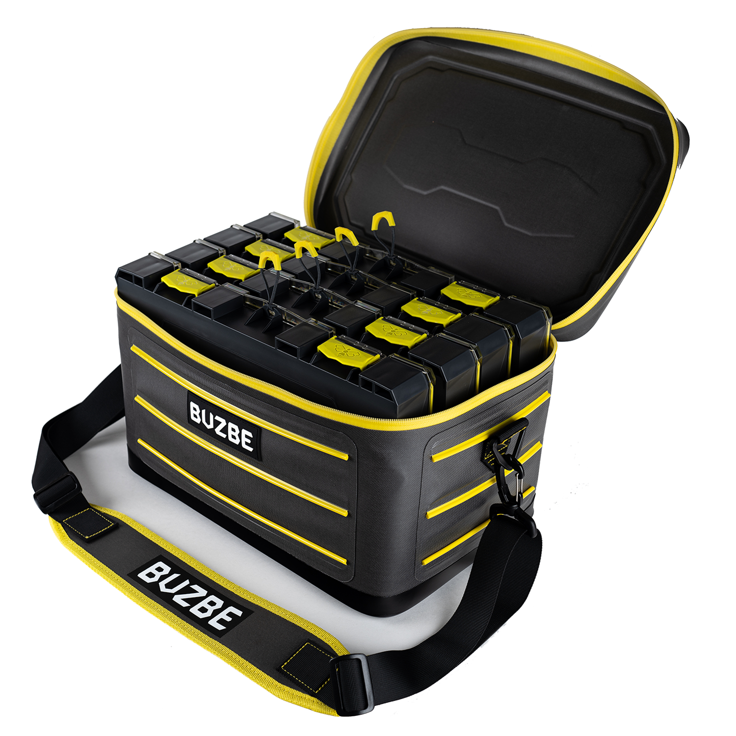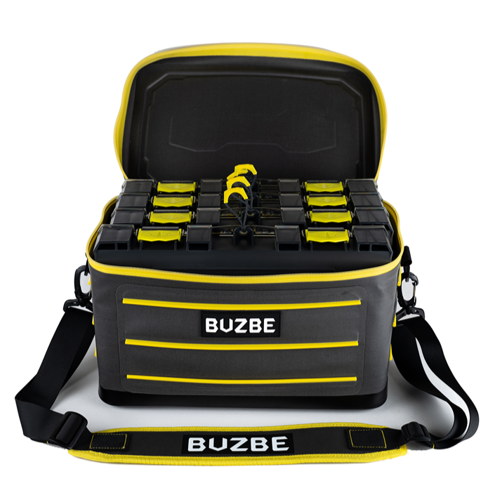 BUZBE continues to revolutionize tackle storage with the introduction of the New Swarm ™ Tackle Bag. The BUZBE Swarm ™ is the ultimate waterproof tackle bag. Featuring a truly waterproof and airtight zipper, the Swarm ™ is fully submergible, keeping water out, and everything inside dry and protected. Available in two different sizes. Available both with and without boxes.